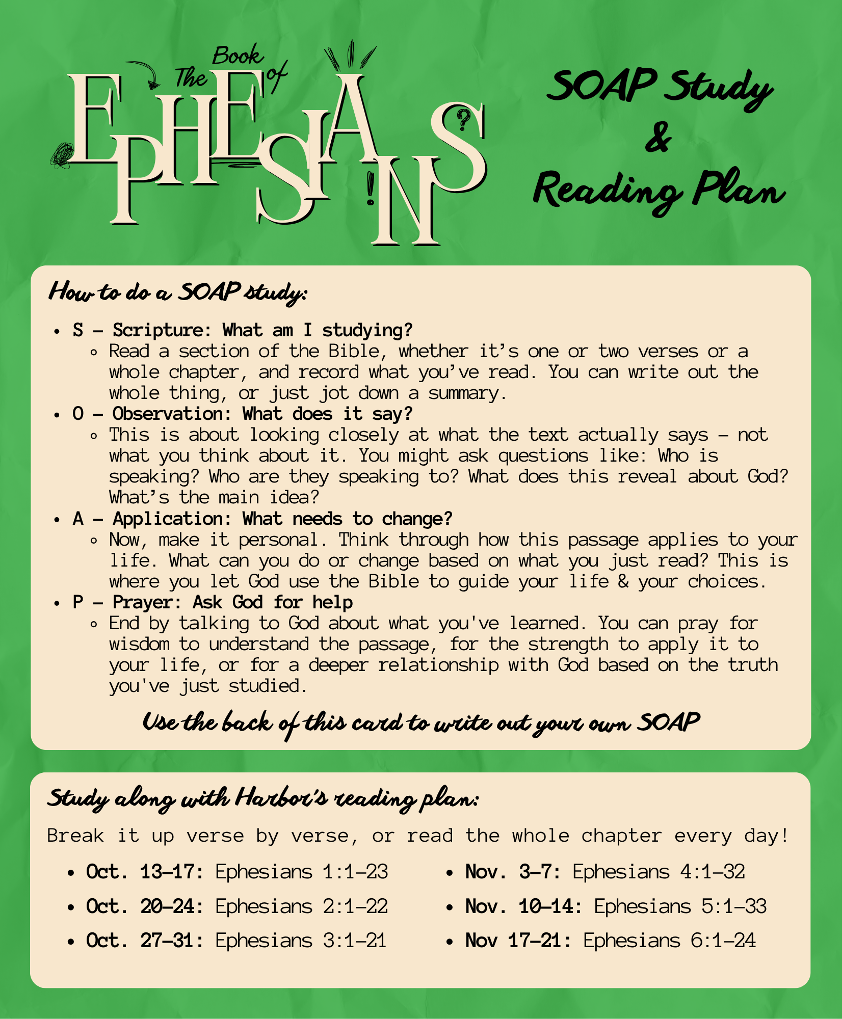 Ephesians Series SOAP & Bible Reading